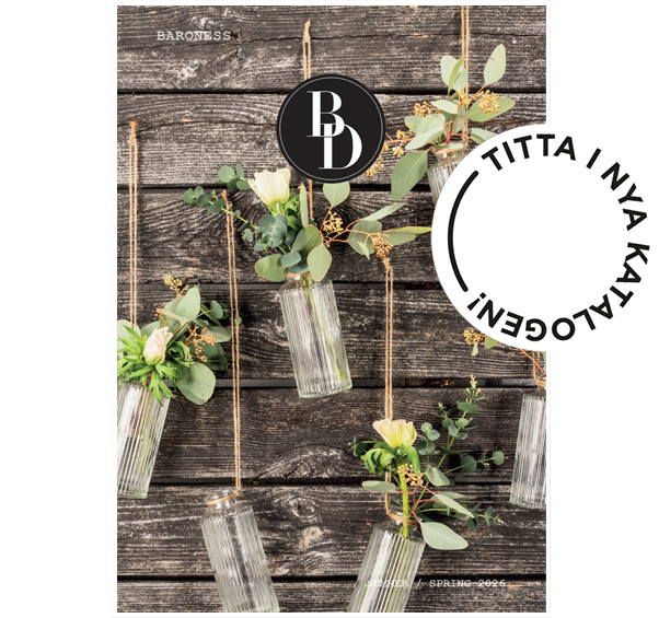 Detta gör att vi kan presentera ett starkt sortiment av naturtrogna konstväxter, spännande och stilrena krukor både för inom- och utomhus. Glas i olika färger och former, zink-artiklar, floristtillbehör m.m.